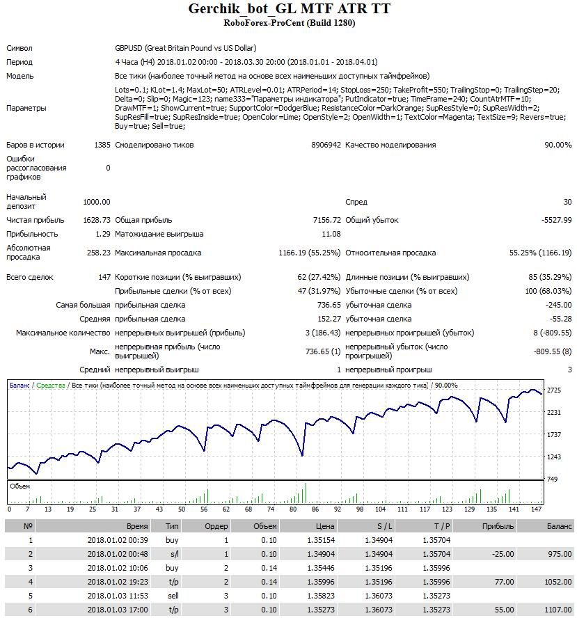 Да, на графике доходности каляка-маляка, результаты всё одно неоднозначные, перманентное туда-сюда, но по факту на данный момент у «GL MTF ATR TT» результаты много лучше, чем у всех предыдущих рассмотренных индикаторов, 162,8% за три месяца.